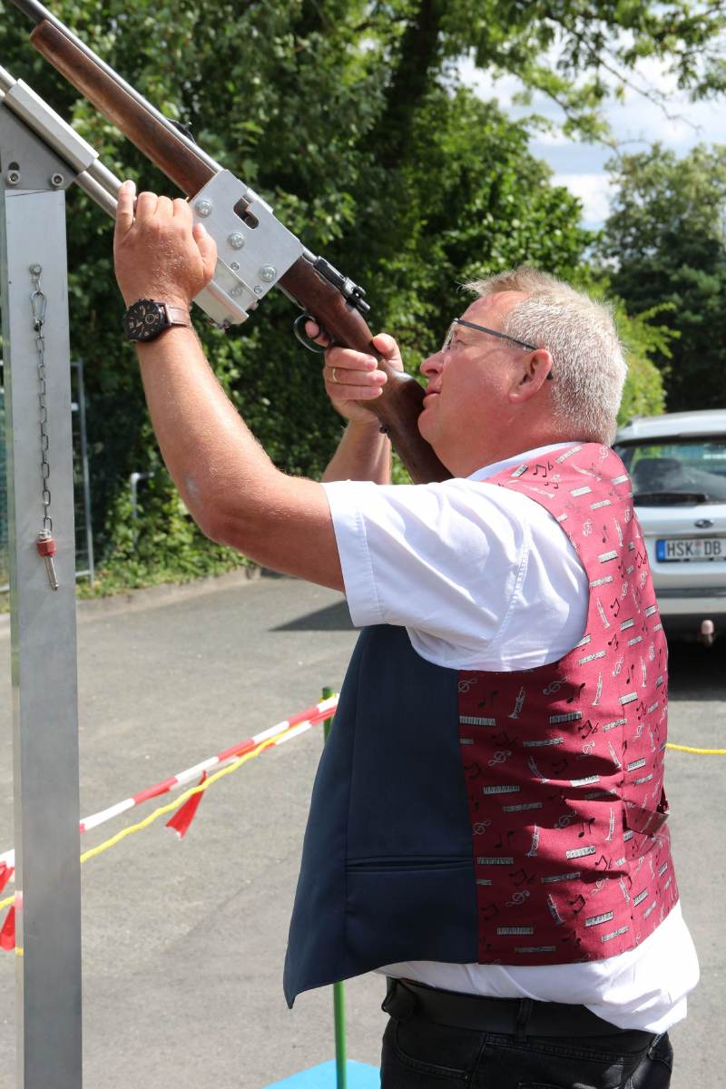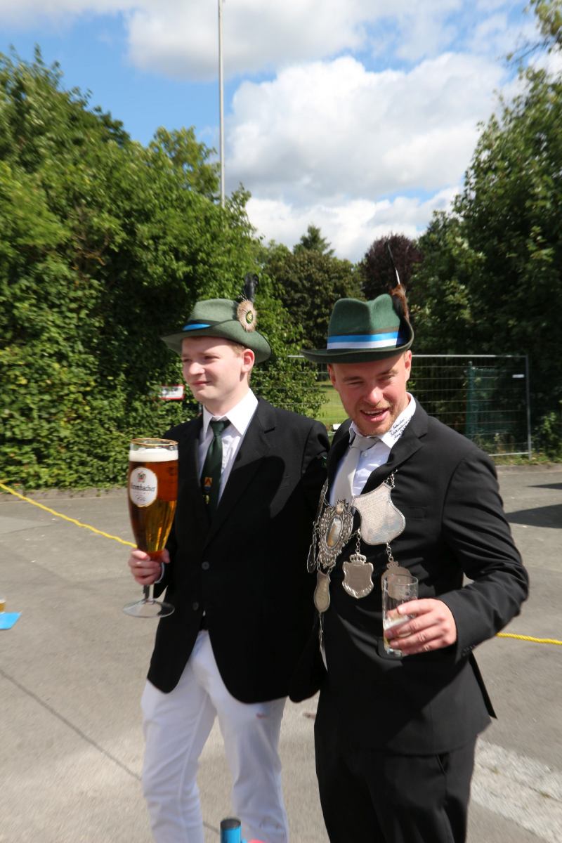 Nach dem Schützenfrühstück marschierten wir pünktlich unter die Stange zum Vogelschießen. Hier gelang es zunächst Moritz Sürig mit dem 40. Schuss sich gegen seine Konkurrenten durchzusetzen und die Jungschützenkönigswürde zu erringen. Zur Königin wählte er Finja Stelte-Lüke.