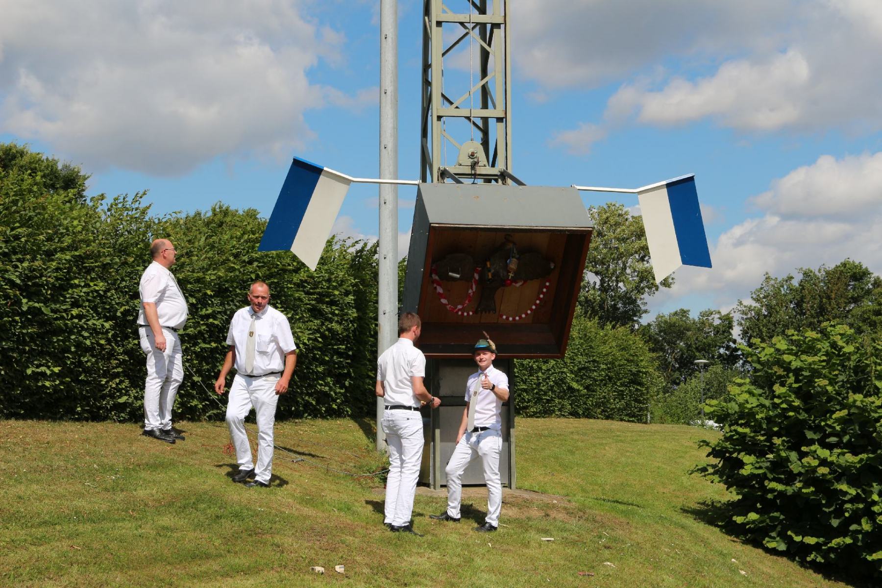 Beim Schießen auf den „normalen“ Vogel sicherte sich Geschäftsführer Tobias Götte die Krone. Der Reichsapfel ging an Petrick Peucker und das Zepter schoss Alexander Rohlfing. Neuer Fasskönig wurde Marco Schramm. In einem danach spannenden Zweikampf wurde dem Rest des Vogels zugesetzt. Hier bei setzte sich Michael Tacken mit dem 295. Schuss gegen seinen Konkurrenten Jan Schröder, der aber neuer Vizekönig wurde, durch. Zur Königin wählte er seine Freundin Kristin Becker.